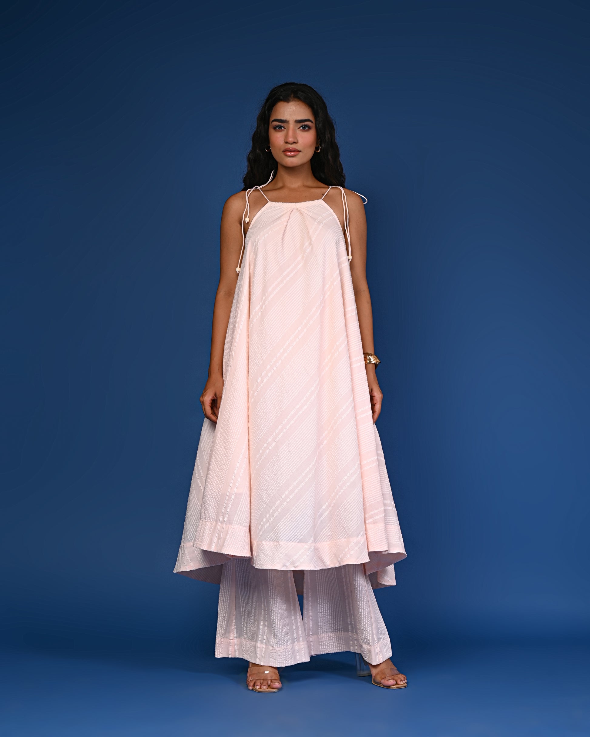 Elevate your wardrobe with the Cosmos Cotton Co-ord Set, crafted from soft peach cotton featuring a subtle textured fabric for added charm. Designed with convenient drawstring details, this set offers both comfort and style, making it perfect for effortless everyday wear or relaxed outings. Embrace breathable fabric and a flattering fit that keeps you comfortable all day long.